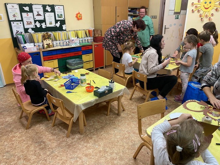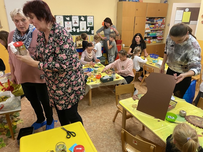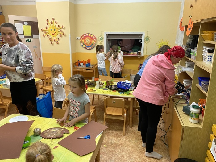 Začátkem listopadu ve školce proběhli listohrátky. Podzimní tvořívá dílna pro rodiče s dětmi.