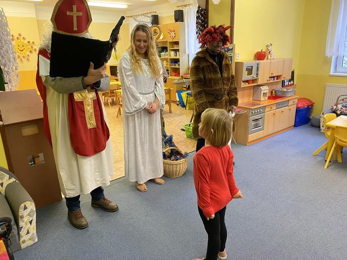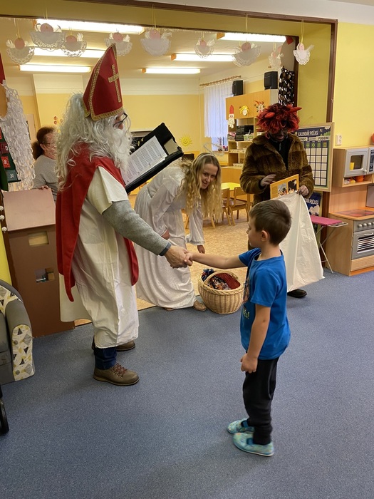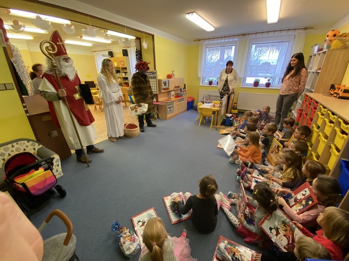 Dne 5.12. nás navštívil čert, Mikuláš a anděl z DDM Jednička. Děti vystoupily s krátkým programem ( písničky a básničky). Připomněli jsme si lidové zvyky a tradice.
