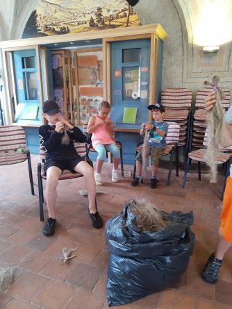 29. 6. jsme zrealizovali na SEVERu v Horním Maršově další projekt mimo školu Šablony III. Děti se dozvěděly vše o zpracování lnu, všechno si v praxi vyzkoušely a vyrobily si z koudele provázek a panenku. Potom jsme se přesunuli na zahradu DOTEKu a zabývali se přírodní zahradou - vše samozřejmě při činnostních aktivitách.
