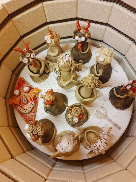 Paní učitelka II. třídy je keramička, také máme novou pec a tak se letos hodně věnujeme této tvorbě. Děti z kroužku vyrobily krásné čertíky a keramiku využíváme i při výtvarné výchově.