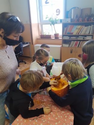 18.listopadu se sešli ve škole žáci I.třídy - 1. - 3. ročník, 30. 11. se k nám přidali žáci II. třídy ze 4. a 5. ročníku. Všechno o co jsme přišli se tu dohnat nedá ale všichni se do školy vrátili s dobrou náladou a nadšení. Opožděně si vydlabali dýni, stihli jsme podzimní výpravu a pečovali s paní školnicí o květiny. Prvňáčci už čtou nová slova a počítají, starší se zlepšili ve čtení a všichni se v distanční výuce mnohé naučili.