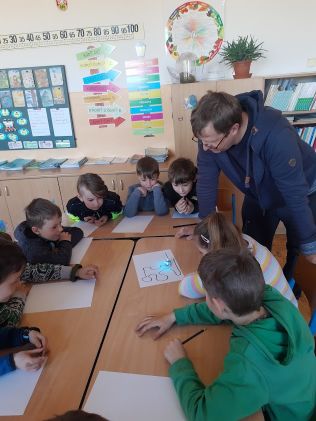 23. března přinesl náš oxterní IT specialista dětem zajímavou pomůcku - ozoboty. Ti starší se nejprve společně trochu zabývali IT teorií a potom si společně s mladšími vyzkoušeli, co tyto malé "roboty" dovedou a co s eještě naučíme, až si je do školy z dotací EU také koupíme.