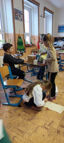 na konci listopadu nás navštívila arterapeutka paní Šoubová se svým projektem Město - vesnice, který vhodně doplnil učivo Prvouky, Matematiky i Pracovních činností, ale také učil děti spolupráci, kultivované diskusi, kritickému myšlení a rozvíjel další potřebné dovednosti.