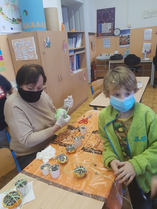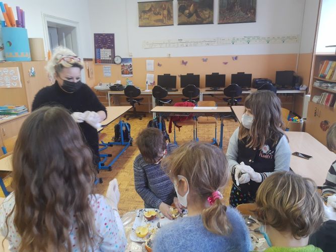 Počátkem ledna jsme se zapojili do akce České společnosti ornitologické "Ptačí hodinka" . Žáci se seznámili se životem ptáků v zimě, naučili se společně poznávat nejznámější druhy a společně jsme vyráběli ptačí krmítka ze směsi tuku a semen plněná o jablek, pomerančové kůry apod. Ta jsme rozmístili na zahradu školy a v pátek jsme hodinu počítali, kolik ptáčků na zahradě máme. Nejvíce bylo sýkorek, kosů a vrabců.